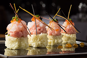 料理はすしを出しつつも、西洋のエッセンスが含まれた料理がいろいろ。素材も北海道産のホタテ、広島産のカキなどを輸入したりとこだわりがあります。また、鉄板焼きのエリアもありさまざまな日本食が食べられるようになっています。日本酒も充実していますが西洋人も多いので200種類ものワインを用意しているのも特徴的です。
