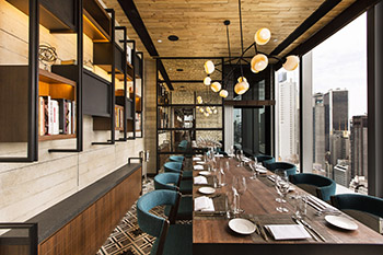 ここの売りはなんといっても30階にあるレストランから一望できる香港の眺めです。場所は買いもの中心地の1つ銅鑼湾(Causeway Bay)にあるので、ランチでもいいですし、夜景を楽しむべく大事な人とのディナーでもいいでしょう。店内のコンセプトは午後5時以降のウォールストリート。つまり、仕事が終わって一息つける、リラックスできる場所を提供しています。店の大きさも6800フィートあり、640人もの客を収容できる大きなレストランです。