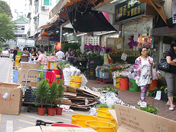 香港は、花を贈る習慣といいますか、機会が日本より多いかもしれません。バレンタインデーは日本とは違い男性が女性に花束を贈りますし、日本のお盆にあたる清明節、母の日、彼女の誕生日、クリスマスなどいろいろとあります。MRT太子駅(Prince Edward)から徒歩10分弱のところには花墟道(Flower Market Road)という花屋がずらりと並んだ道があるほどです。長さ300メートルほどですがここにいけば、あじさい、ひまわり、ポインセチア、チューリップなどあらゆる種類の花が売られていますし、花をみて今は何の季節なのかがはっきりとわかります。美しい色とりどりの花がディスプレーされているので、歩くだけでも楽しくなるストリートです。