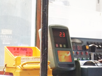 乗り方は後ろから乗り、前で降ります。支払いは下車するときで、運転手の横にあるお金をいれる箱に入れるか、オクトパスといわれる非接触型のスマートカード(東京でいえばsuicaです。詳しいことは次のリンク先へ。https://tokuhain.arukikata.co.jp/hongkong/2009/12/post_195.html)で支払で行います。運賃は一律2.3ドルと非常に格安。どこまで行っても同じ額なので香港市民にも支持されています。現金払いのときはおつりは戻ってこないのでそこだけは気をつけてください。