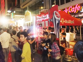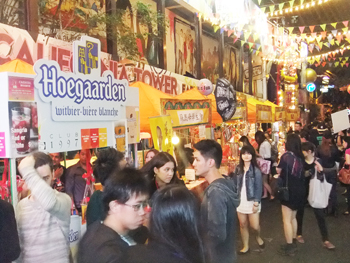 蘭桂坊はバーやレストラン、クラブがずらりと並びますが、さらに80を超える露天が出店し雰囲気を盛り上げていました。また、ブラジルのサンバダンスとカンフーのパフォーマンスやサックス奏者による演奏のほか、一般参加によるビールかパンの大食い大会が開かれました。トイザらスがスポンサーということで子供向けのアトラクションも充実。子供から大人まで楽しめるイベントで大勢の人が訪れていました。