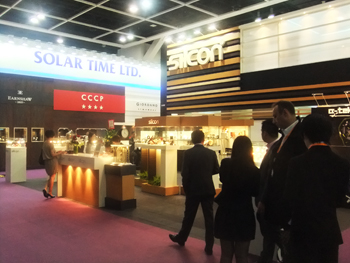 香港、中国、日本、スイス、ドイツ、フランス、アメリカなど15カ国・地域の740社余りが参加しました。ちょっとした建物や小さな会議室まで作るような大きなブースを構えるところからシンプルなブースまで様々。香港は宝飾品がよく売れるほか、2012年の時計の輸出額は95.3億米ドルで世界トップの輸出額を誇ります。それだけに各時計代理店は力が入っています。