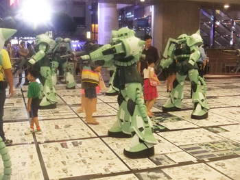 7月25日に巨大なガンダムとシャア専用ザクⅡが香港の巨大ショッピングモール、時代広場(Times Square)に展示されていると書きましたが、8月2日よりさらに展示物が増えた上、キャンペーンが開始され、子どもたちの夏休みと相まって来場者が止まらない状況です。改めて行ってきました。
