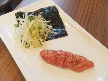 通常の代表的なメニュー、とんこつラーメン(68ドル)は、麺の太さと硬さ、ねぎやにんにくの有り無し、キャベツなどのトッピングを加えるかどうかなど、お好みのラーメンをたべられるようになってます。夜は、焼明太子などが用意されるなど居酒屋気分にもさせてくれます。