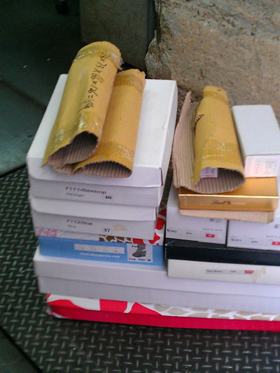 ちり紙交換車による新聞紙などの回収システムもない香港ですが、まちのあちらこちらに雑誌、ダンボールなどを引き受けてくれるところがあります。システムは簡単で、店の前に量りがあり、そこに載せるだけ。重さに応じて換金してくれます。店にもよりますが、買取価格はだいだい雑誌・新聞でキロ当たり80 セント、ダンボールで70セントとなっています。また空き缶も1缶10セントで引き取ってくれます。ちなみに写真の一番下は私が運び込んだものですが、3キロで2ドル10セント換金されました。