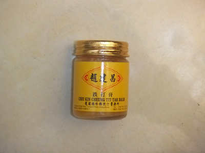 写真にあるのは、今、私が使用している万金油です。知り合いがカンフーの先生をしていて、打撲、筋肉痛、マッサージをする際に使用すると紹介されたからです。効果はテキメンです。2分ほど患部を軽いマッサージをするように塗り続けた後、しばらくすると筋肉に薬が効いていくのがハッキリとわかります。ふたを開けたとたんに、あの"スースー"するような匂いが強烈にしますから、それなりに強力なのでしょう。一度、適量を誤って多く塗りすぎ、あまりのヒリヒリ感で感覚的として患部が"火事"になったことも…(結局、濡れたタオルで一度薬を取りのぞく羽目に)。小生はぎっくり腰になる前から使っていたのですが、腰に疲れを感じたり際はよくお世話になりました。ぎっくり腰の際に使用したときは、確実に痛みを和らげてくれました。