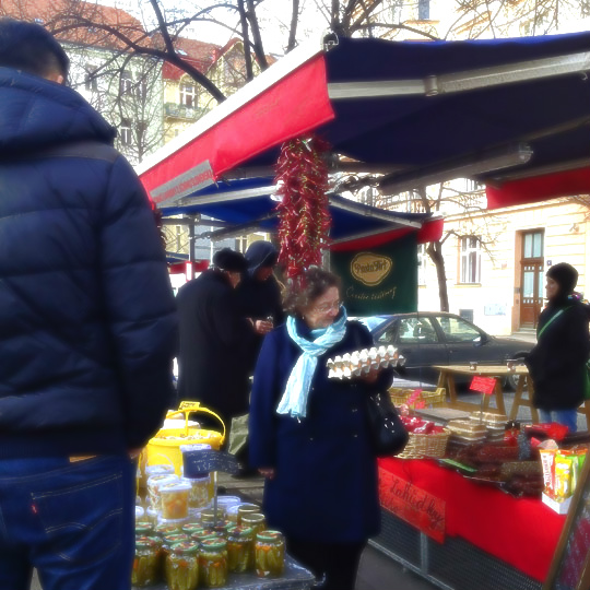 近年、プラハ市民にとって定番となったファーマーズマーケット。