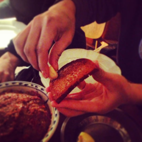 フレッシュな牛生肉を香辛料などと一緒にミンチにしたものです。