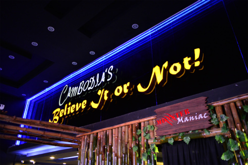 はい、ご説明します。こちらロンドン、タイムズスクエア、ゴールドコーストやタイのパタヤにある”リプリーズ・ビリーブ・イット・オア・ノット”(1918年、探検家である漫画家ロバートリプリーが世界198カ国を旅行しながら集めた摩訶不思議な(変な)グッズを展示したりしているビックリ博物館。)をベースとして4つのテーマに分けて紹介しています。