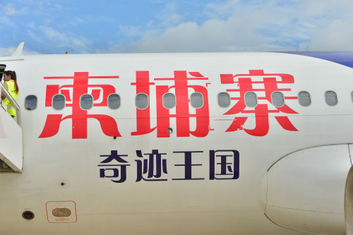 機体左側には中国語で「カンボジア、奇跡王国」とペイント