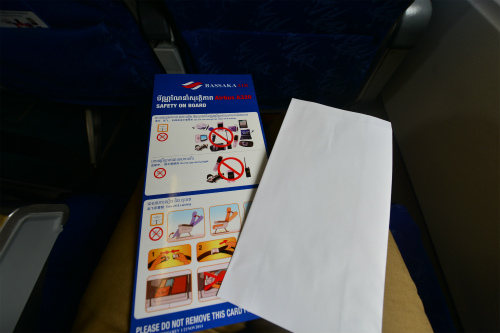 座席前のポケットには、無地のゲロ袋と、緊急時の案内のみ。いろいろ手配が間に合っていない模様