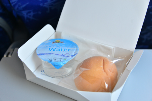 簡単な機内食ですが、無いより嬉しい。パンの中はなんかココナッツ豚そぼろのようなものが入ってました