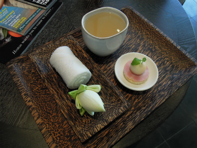 マッサージ後は、温かいしょうが湯とカナッペが準備され、温かな体を持続させると言うサービスも。