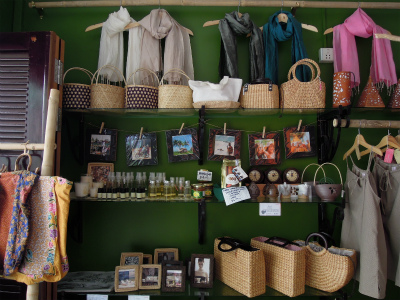 気になる商品ですが、KIKOデザインのスバエク(牛の皮)ブレスレットや、水草で編んだバスケット、NGOと一緒に作っているイグサ商品などカンボジアならではの商品が盛りだくさん。