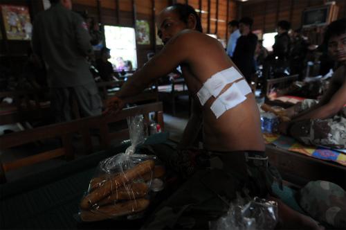 キャンプ近くにある兵士宿舎にも訪問してみました。そこでは傷ついた兵士たちが治療を受け、回復するまで休んでいました。中には脇腹を打ち抜かれたものや、目を負傷した者など30人ほどいました。