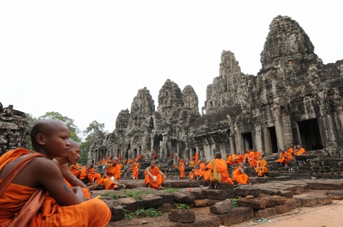 東南アジア全土から集めた僧侶たちへのイベントでバイヨン寺院が会場であり、フンセン首相も来たようです。