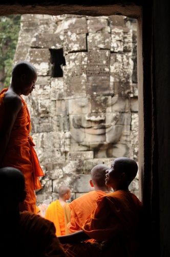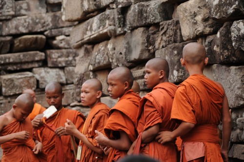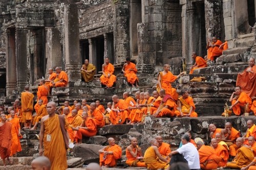 その辺はあまり興味なかったのでスルーして、バイヨン寺院へ入ると、いるわいるわで僧侶祭りです。