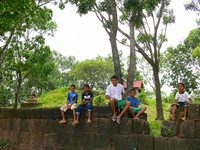 中心祠堂に戻るとピーロムがねもとに講釈をしている。若干25歳である彼だが、以外と博学、大学でツーリズムを専攻していたこともあり、クメール寺院を含むカンボジアの見所に関する知識は非常で豊富である。また勘が鋭く、1を聞いて10を知るタイプの人間であるため、聴講者に対して的を得た説明、質問に対する答えを返すことができるといった、カンボジアでは希少な人物である。この寺院に関する歴史と、創建した王についての説明であるが、クメール遺跡は好きのねもとは、その歴史に関して一生懸命聞きいっている。