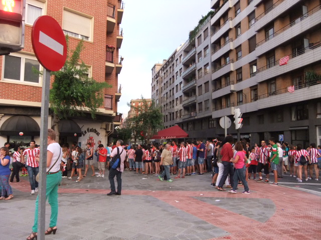 それはそれは沢山のサポーターたちが試合前にバルで飲んでいて、赤と白のストライプが眩しく、気分が盛り上がりますよ!