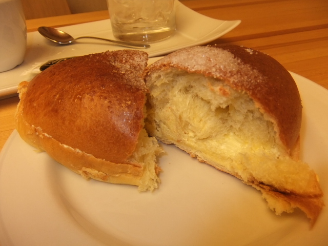 これはBollo suizo(ボジョ スイソ)と呼ばれるブリオッシュタイプのパンを半分に切り、そこにバター・卵黄・砂糖を混ぜて練ったものを挟むという高カロリー間違いなしの一品です!