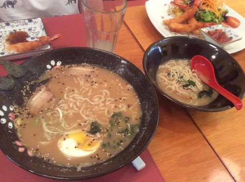 トンコツ、味噌、しょうゆがあります。サイズも大に可能でこのようにシェアをすることも可能です。
