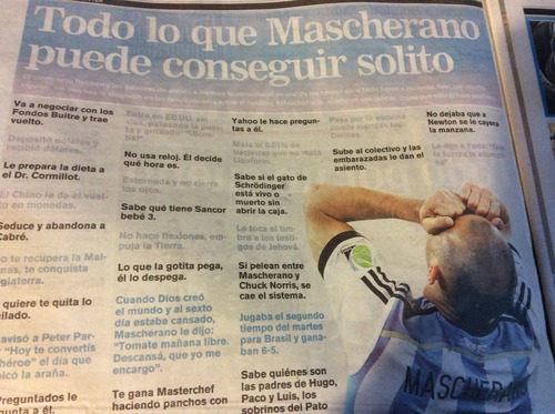 マッチェラーノ選手の奇跡として アルゼンチン中で英雄扱いになり、さらにありえないことをやり遂げる人としてアルゼンチンジョークも伴って、アルゼンチン中でブームが起こっています。