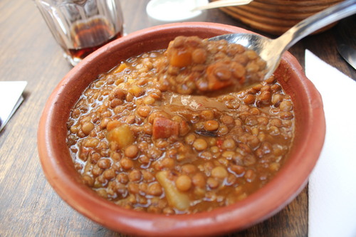 今日は lenteja レンテッハ(レンズ豆の煮込み)を注文しました。