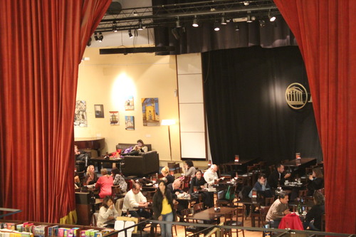 今でも昔の劇場の面影を残しているのが特に階を分けるバルコニーそして、天井のキューブラ、そして舞台であった現在の喫茶店には舞台幕がそのままに、また各種の装飾はそのままで修復されています。