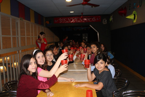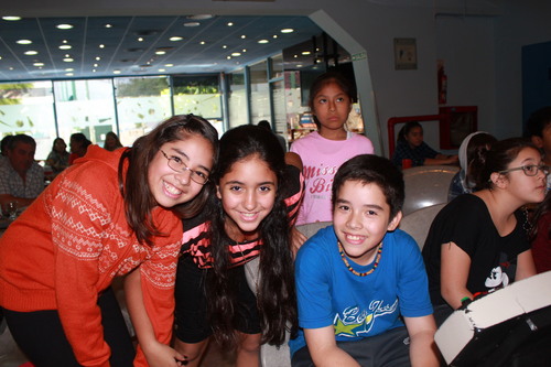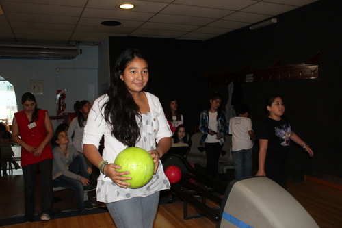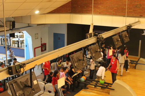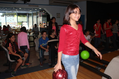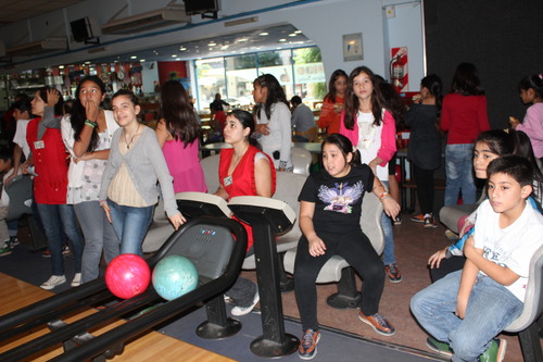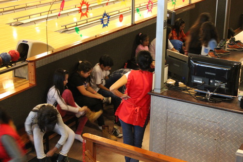 その後、専用シューズに履き替え、ボーリング場へ登場。今回は27名でしたので3レーンです。アルゼンチンらしく皆さんおくれてきます。スナックの時間は10人しかいなかったので心配しましたが、午後1時半のボーリングに移った時点でどっと来て20人に、それから2時過ぎてもまた来ました。。。それでもいちいち初めての子達には何を食べるか聞いて、ボーリングの横で食べさせてくれます。