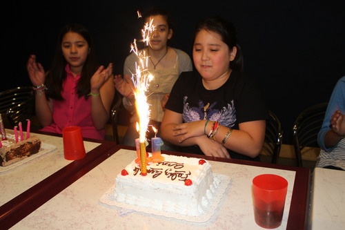 午後2時45分までボーリングの後は優勝者にトロフィーがあります。しかし一番大きいトロフィーをもらうのはお誕生日の子供です。そして今回はケーキは自分で持っていかなければならないプランでしたので、ケーキのデコレーションをして皆で誕生日を祝って歌って、ロウソクを消します。