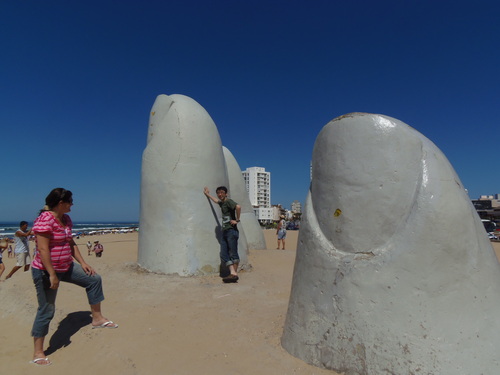 写真はウルグアイの最高のビーチリゾート プンタ デル エステの有名な手の彫刻です!モデルは私のお友達のクリスティーナ!