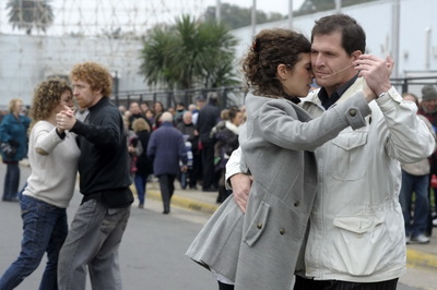 でも、待っている間に街頭ミロンガが始まりました。折しも寒い朝、タンゴへのパッションに熱い!人々もたくさんいました。