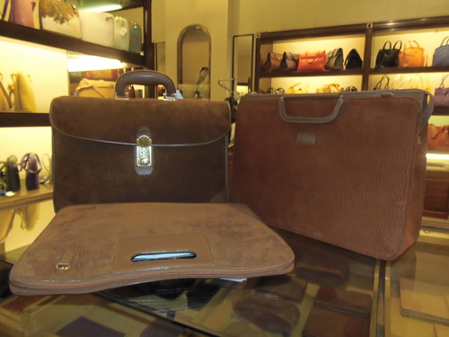上記のカルピンチョの書類カバンは素敵です。お値段は左の大が3990ペソ。右の中が2990ペソ。手前の書類ケースは1750ペソです。(7月末現在)ちなみにこの路線のデザイン大きさで、牛革なめしですと、30%ぐらい低価格です。