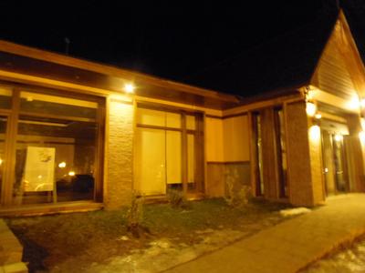 カラファテの街を入って、ガソリンスタンドからスーパーへ行く間にあるバラのある公園前にある入り口から右手にある建物です。