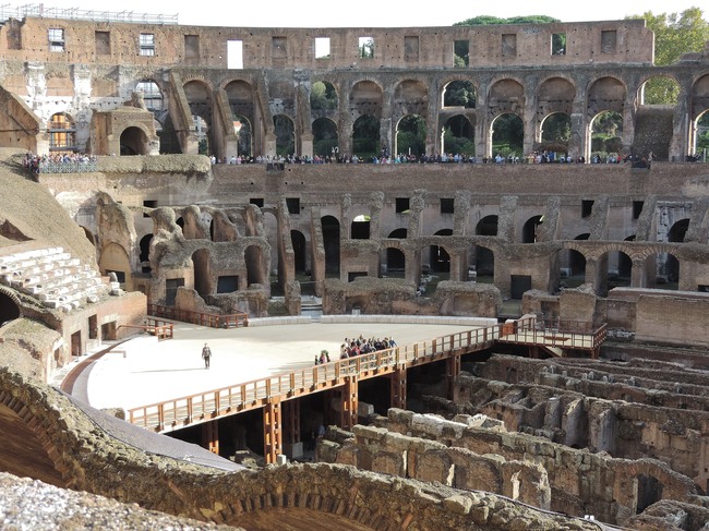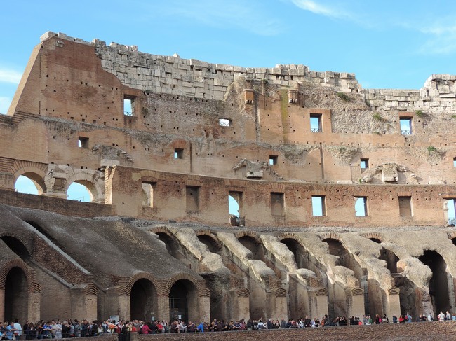 紀元80年(ローマ皇帝ティトゥス帝の治下)に完成したので、既に1935年が経っています。その頃、日本は弥生時代ですね。約5万人を収容できた闘技場です。