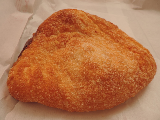 ↑ 横幅は15cm位ある大きなパイです。前回その3でご紹介したお菓子、”さくさくの食感の扇形のパイ、ヴェンターリオ”同様、イタリアではパイもポピュラーです。