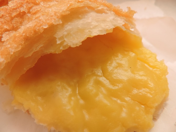↑ パイの膨らんで盛り上がった部分にはカスタードクリームが入っています!
