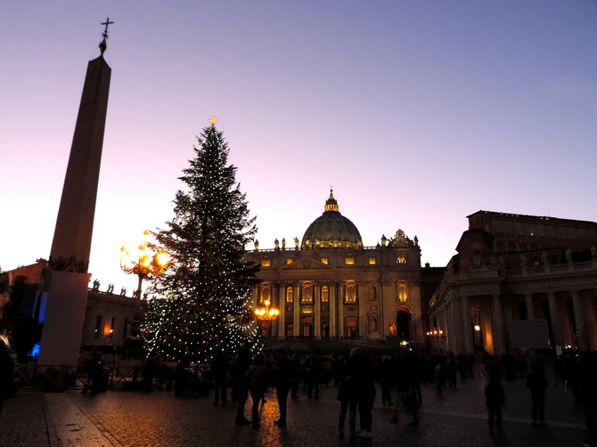 ↑ 世間では、エピファニアの終了と共にお祭りの装飾が全て取り外されますが(クリスマスのイルミネーションなど)、このローマ法王のクリスマスツリーとプレゼピオは2月2日まで展示されていますので、まだまだ楽しめます。