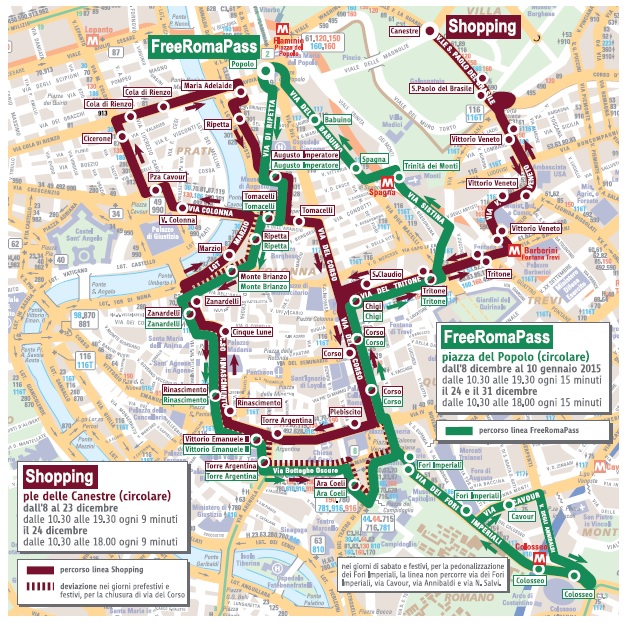 “クリスマスは私と出掛けない?”(と、無料バスがこの言葉言っています)を合言葉に、ローマでは今年も無料のショッピング用シャトルバスのサービスが始まりました。