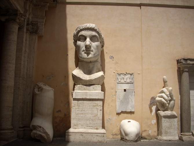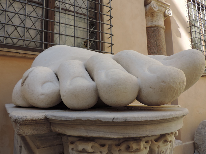 ↑ 彼がコンスタンティヌス帝です。彼の腕や手などもあります。(カピトリーニ美術館のコンセルヴァトーリ宮の中庭)