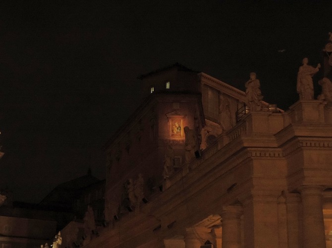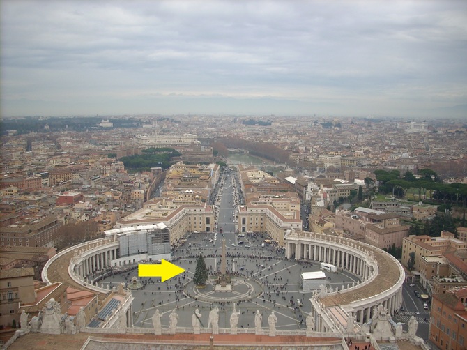 このモザイクは、前ローマ法王ヨハネ・パウロ2世(在位:1978-2005年)が1981年5月13日に、この場所でトルコ人テロリスト、メフメト・アリ・アジャに銃撃されたことを記憶する為のモザイクとして作られました。(暗殺未遂犯は、トルコで刑期を終え釈放)