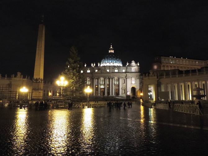 ↑ 続いて、バチカン市国のサン・ピエトロ大聖堂へ行って来ました。雨が降っているので石畳が濡れています。