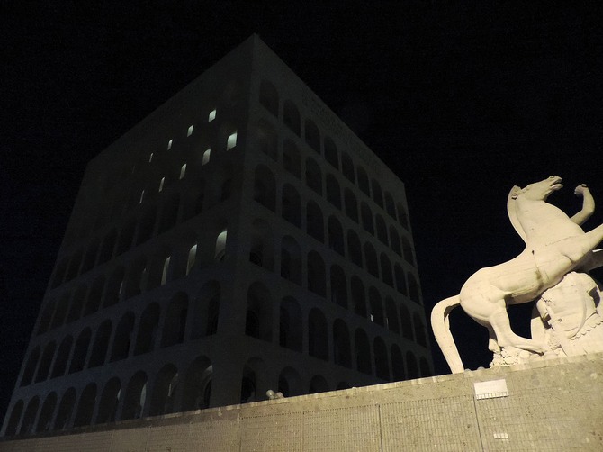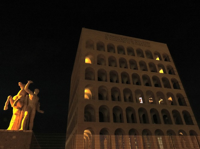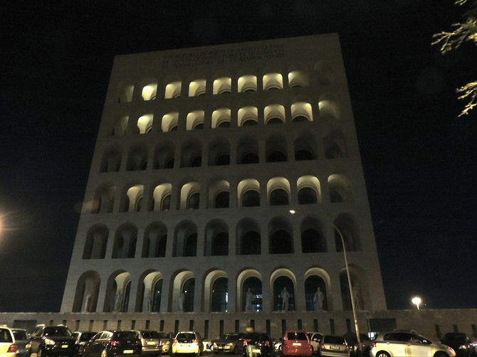 特に夜に見ると不気味さが一層増しますので、今日は日没後の四角いコロッセオも併せてご紹介したいと思います。