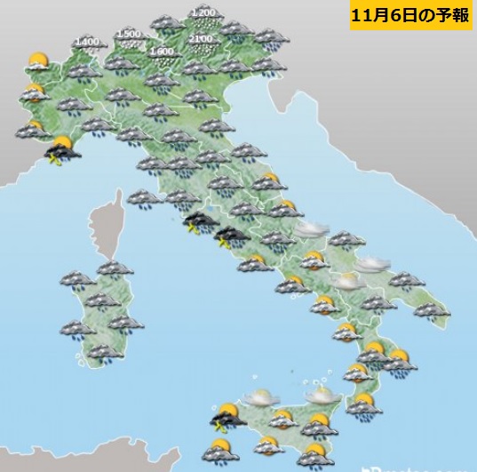 ↑ 本日の朝の天気予報です。ローマのお天気が完全に回復するのは土曜日以降です。