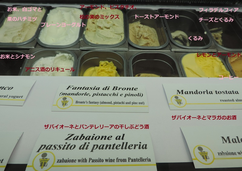 こちらの写真の黒ゴマはとてもおいしいです!ジェラートの種類を日本語で記していきます。