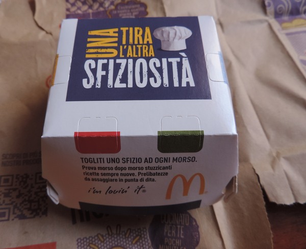 イタリアのマクドナルドは、イタリアでしか食べられない限定メニューというのが多いです。(例:パスタや、朝食用に設置されたバール風の甘い朝ごはんコーナーなど)