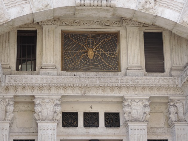 ↑ こちらは蜘蛛の館。入口に蜘蛛のシンボルが。蜘蛛を家のシンボルにしたいと思う人はあまりいないですよね(?)