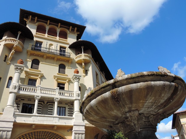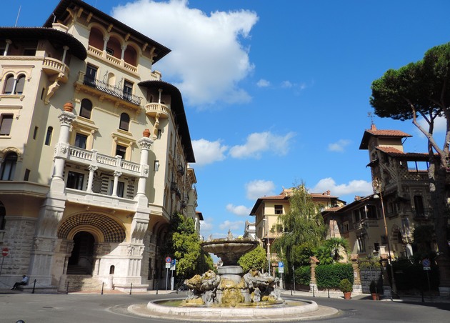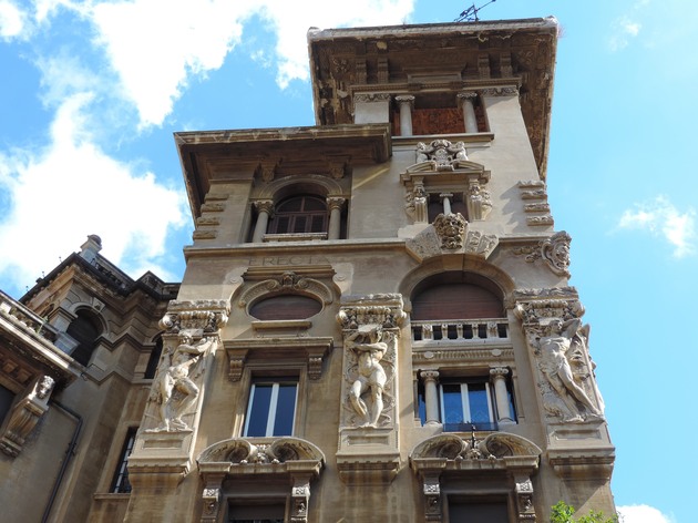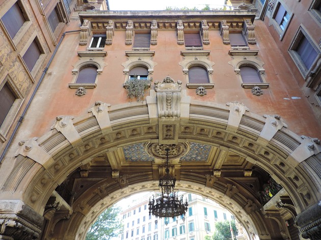 ↑ ドーラ地区は1909年の都市計画により整備が開始された区域で、指揮をとった建築家はジーノ・コッペデー(Gino Coppedè)であることから、この建築家の名前をとって、コッペデー地区ともいいます。そのファンタジーあふれる建物が集まっている一帯という解釈で、厳密な意味では”地区”ではありません。正式な地区名は、ローマではトリエステ地区(Quartiere Trieste)といいます。