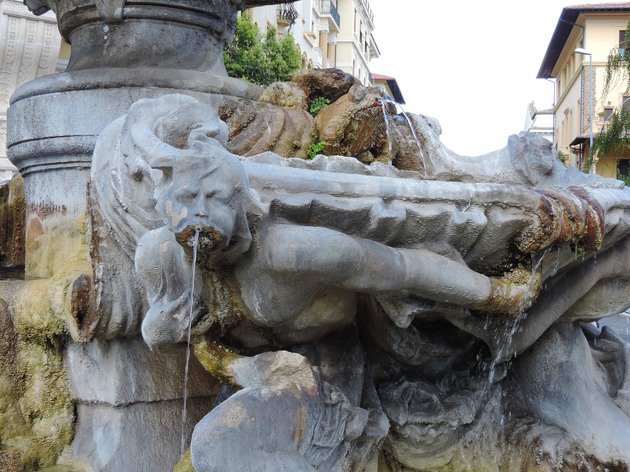 ↑ アーチをくぐるとそこはミンチョ広場(Piazza Mincio)、今日の訪問記の主人公、カエルさんの噴水があります。