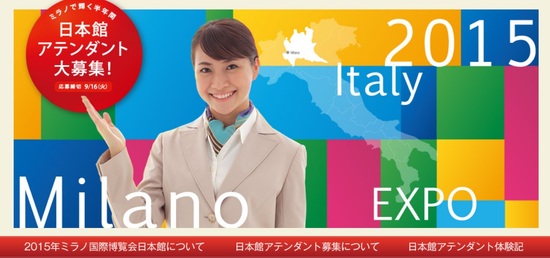 日本館オープンに関連して、現在、日本館で働いていただけるアテンダント(男性・女性)を110名程度募集しています。応募は始まっており、ホームページよりエントリーができます。応募締め切りは2014年9月16日(火)午後5時必着ですので、ご興味のある方が周りにいらっしゃいましたらお伝え下さい!